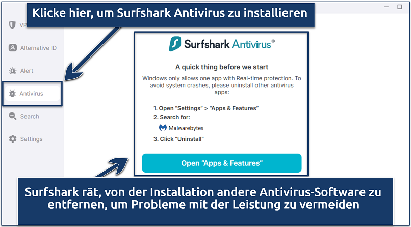 - Hole Dir eine universelle Lösung. Für optimale Gerätesicherheit und Online-Datenschutz empfehle ich Surfsharks Antivirus. Diese integrierte Lösung bietet eine leistungsstarke Antivirus-Engine zusammen mit einem Premium-VPN.