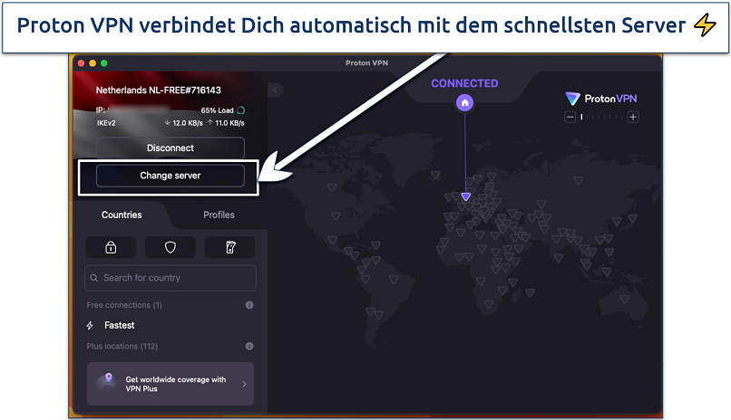 Das kostenlose Paket von Proton VPN ist daher herausragend, da es unbegrenzt viele Daten bietet. Im Gegensatz zu den meisten kostenlosen VPNs, die Dich nach Erreichen eines Datenlimits trennen, haben wir Proton VPN kontinuierlich getestet und sind nie auf irgendwelche Limits gestoßen. Unsere Verbindung ist beim täglichen Surfen und Streamen immer stabil.