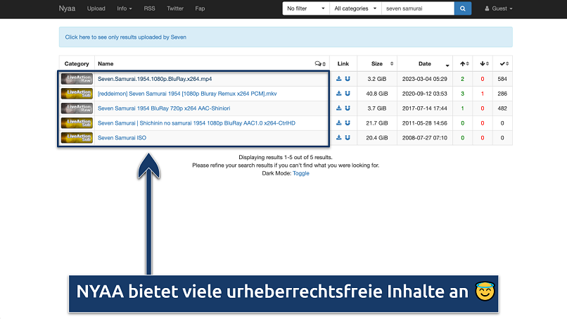 Hinweis: Du solltest NYAA nicht nutzen, um raubkopierte oder illegale Inhalte herunterzuladen.