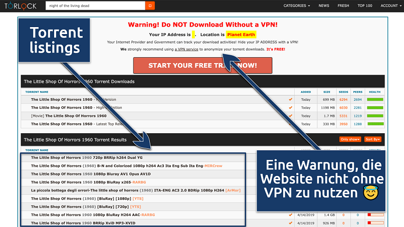 - Achtung vor nachfolgenden Torrent-Websites – einie sind gefälscht