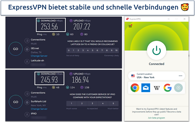 - Höchste Geschwindigkeiten der von uns getesteten VPNs